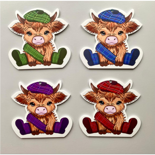SUBLIMATED TARTAN HIGHLAND COW KEYRING (WC2304)